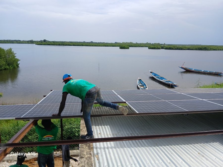 À Toubacouta, le projet a porté sur un système de 19,6 KWc comprenant 35 panneaux de 560 WC, trois convertisseurs Victron Multiplus 48/15000, quatre régulateurs MPPT Smart Solar et une batterie lithium BSL de 15 kWh. Ce système alimente l’unité de transformation de la Coopérative Jappo Liggey au centre de Toubacouta.